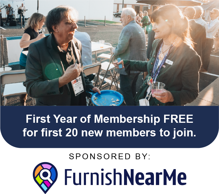 Encourage your industry friends and colleagues to join you because *the first 20 new members to join at the meetup will get their first year of membership for FREE sponsored by FurnishNearMe! All new members who sign up after the first 20 will receive a specialty introductory rate of $99 for their first year.