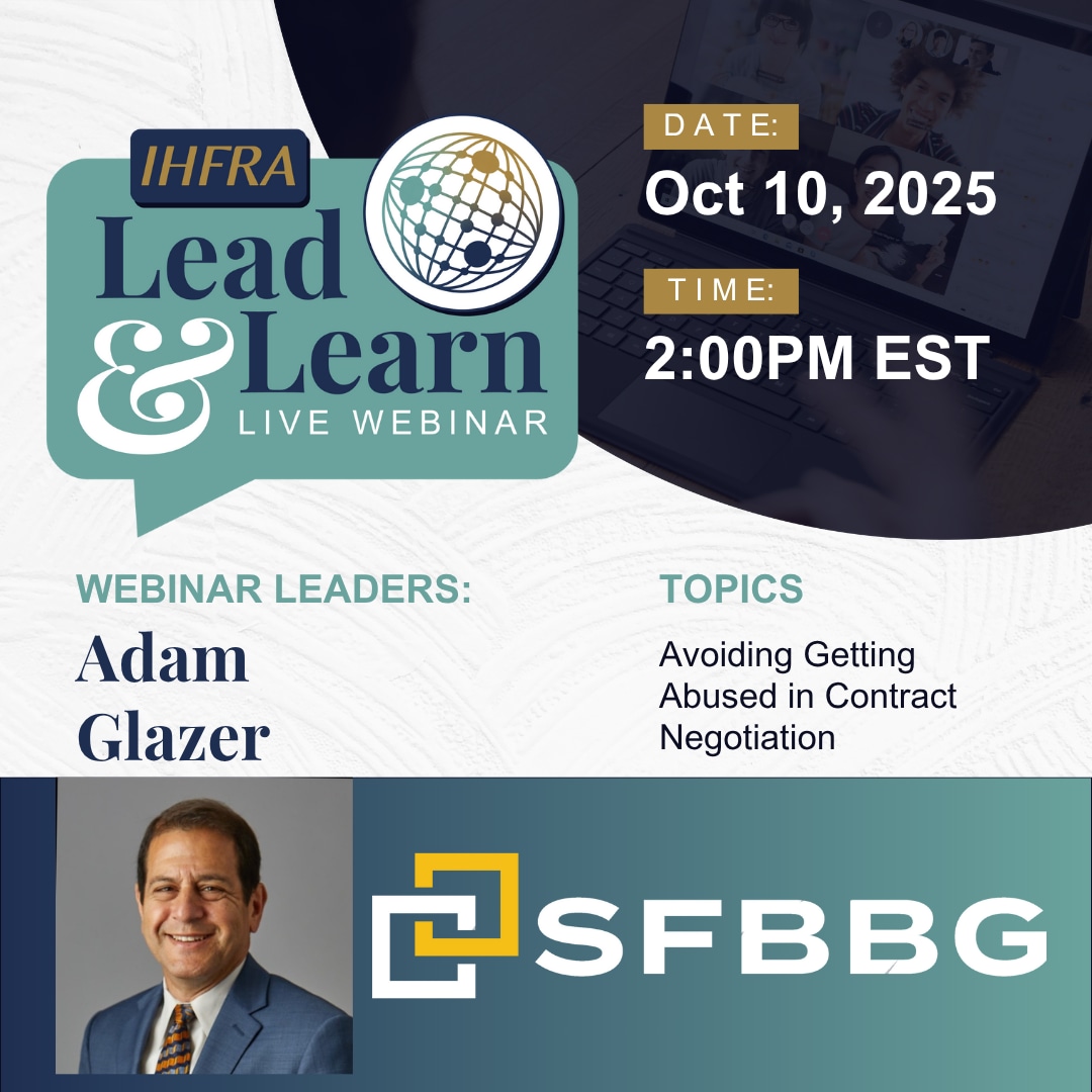 IHFRA Webinar - “Thank you, sir, May I Have Another? Avoiding Getting Abused in Contract Negotiation.” With veteran attorney Adam Glazer